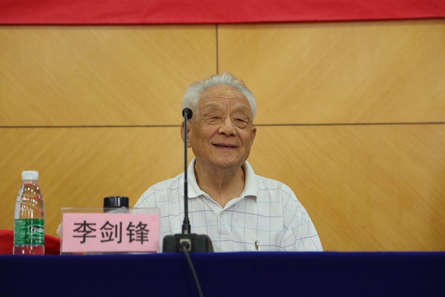年逾九旬的李剑锋老将军,从“投身革命、学习成长、参加战斗”三个层面,将在场的青年大学生带入了烽火硝烟的战争年代。他时而侃侃而谈,时而慷慨激昂,时而挥动有力的手臂,用生动的故事和感人的亲身经历,讲述了一个革命老人为了新中国的解放、为了人民的幸福生活、为了共产主义事业,浴血奋战的寻梦历程。他“一不怕苦,二不怕死”的英雄气概和“生命不息,奋斗不止”的革命精神,使在场的青年大学生不仅接受了一次深刻的爱国主义教育,更接受了一次心灵的洗礼。他勉励青年大学生要珍惜来之不易的幸福生活,努力继承和发扬革命先烈在长期革命斗争中形成的革命精神、优良作风和高尚品德,刻苦学习、立志成才,争做社会主义现代化事业的建设者和接班人。