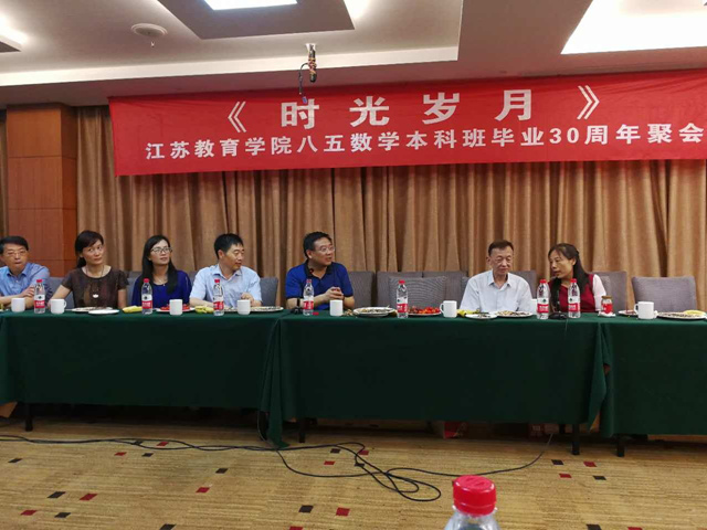 7月8日下午,江苏教育学院85级数学本科班毕业30年《时光岁月》聚会活动在我校百草园宾馆举行。党委书记李洪天出席活动,他对85级校友心系母校、感恩母校给予了高度评价,对校友们今天所取得的成绩表示祝贺。教务处处长徐新萍(原数学与信息技术学院院长)、原数学系退休教师单佑民、数学与信息技术学院党总支副书记凌晓牧等参加活动。