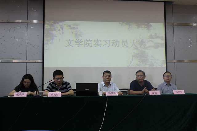 9月13,文学院在浦口校区教学楼302报告厅召开2018届毕业生实习动员大会。该院院长冯保善,党总支书记沈明、副书记张淼出席会议。毕业班班主任刘学军、辅导员戴晓凤以及全体毕业生参加会议。副院长杨思贤主持会议。