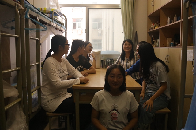 高荣国、庞爱中以及其他宿舍家长们走进宿舍,与自己的“孩子”们亲切聊家常,了解每一位学生的性格特点和未来志愿,结合本专业的学习和未来发展前景帮助学生制定个人学习计划和职业规划方向,并向每一位新生提出殷切希望。