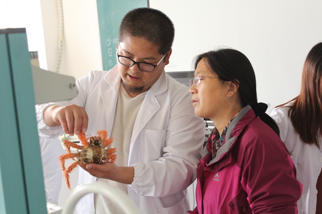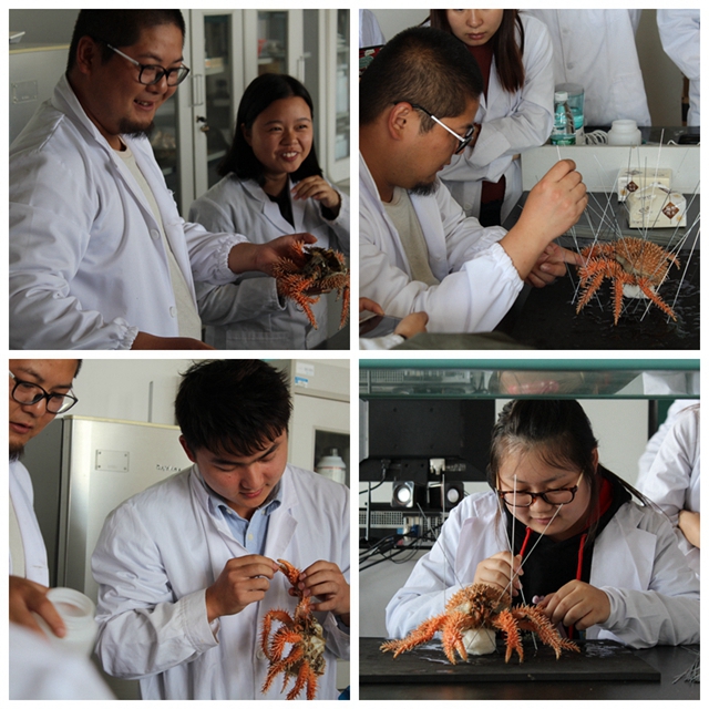 看完黄悦老师演示后,同学们以人面蟹为材料,自己动手制作标本。从清洗到固定,初次尝试的同学们遇到这样那样的问题,在老师的指导下最终都顺利解决。“纸上得来终觉浅,绝知此事要躬行”,实践出真知,同学们将课本上学到的理论知识应用到实践中,在实践中得到证实并加以巩固,使学习过程更为深刻。