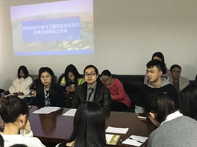 为深入贯彻党的十九大精神,经过前期探讨交流,结合学院实际情况,教育科学学院启动“青马工程”并成立以入党积极分子为主体的学生会新部门——“先锋卓越团”,11月7日上午,举行“青马工程”初级班启动及“先锋卓越团”成立仪式。党总支副书记张志行主持仪式,学生党员代表、学生入党积极分子40余人参加仪式。