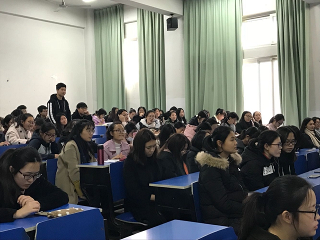 11月29日,外国语学院邀请江苏汇鸿畜产嘉画文体有限公司董事长、高级国际商务师陈锋先生来校,在浦口校区作了题为“你脑海中的外贸工作VS现实中的外贸工作”的讲座。商务教研室所有教师、商务英语专业全体学生以及对商务英语感兴趣的学生聆听了讲座。