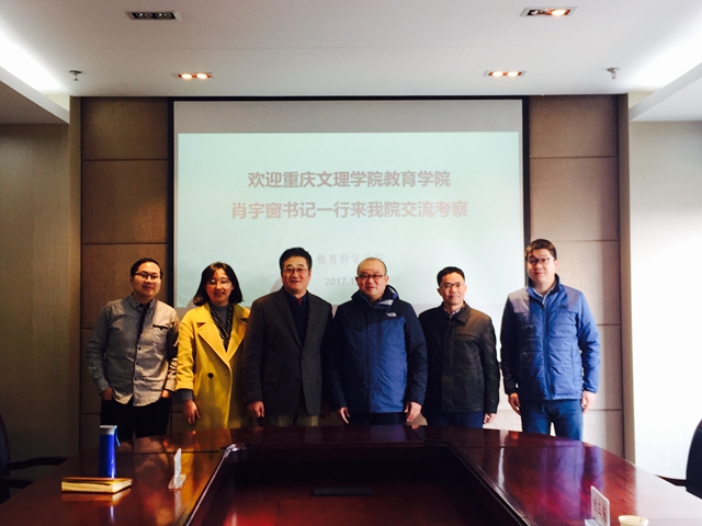 12月5日上午,重庆文理学院教育学院党总支书记肖宇窗一行4人来我校教育科学学院参观考察。教育科学学院党总支书记王玲玲、副院长陈国庆、党总支副书记张志行给予工作接待。