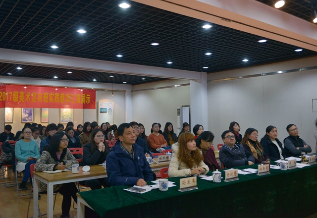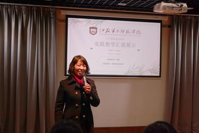 12月22日下午, 马克思主义学院在草场门校区艺体楼5楼报告厅举行17美术师范定向班《思想道德修养与法律基础》课实践汇报活动。副校长张勤、南京航空航天大学马克思主义学院院长平旭、南京林业大学马克思主义学院曹顺仙、南京铁道职业技术学院思政部副主任杨晓慧、我校教务处处长徐新萍和马克思主义学院院长刘素梅参加评审。