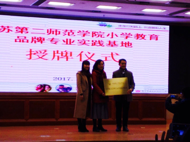 25日上午举行启动仪式,行知小学校长杨瑞清,我校教务处副处长陈蓓、教育科学学院党总支书记王玲玲出席仪式,并为“江苏第二师范学院小学教育品牌专业实践基地”授牌。陈蓓及王玲玲发表讲话,勉励学生要珍惜此次宝贵的学习机会,相互合作,共同成长。