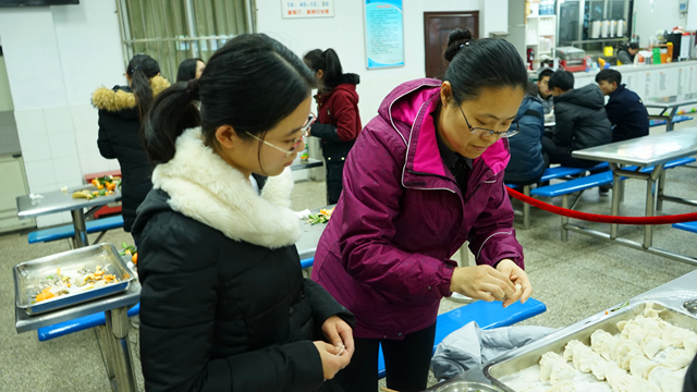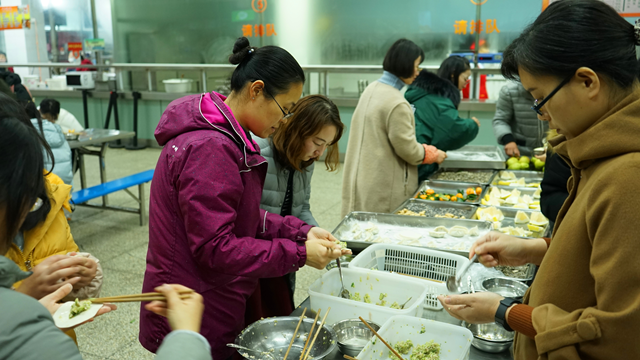 联欢会以包饺子和做游戏的方式进行。近200名同学参加活动。现场欢声笑语,热气腾腾,同学们在活动过程中加深了交流,增进了友谊。师生同乐的活动让同学们在寒冷的冬日感受到来自学校的节日问候,也感受到江苏二师大集体的温暖。