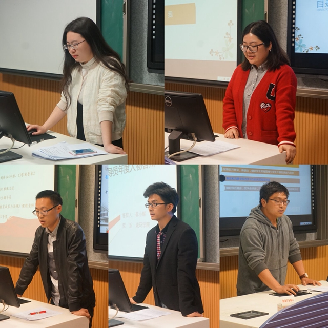 在前期学院推荐、网上票选环节的基础上,评审会现场采取每人限时5分钟、以PPT答辩的形式进行。共10位辅导员年度人物候选人先后汇报了自己的特色工作、专业素养及所获荣誉等。