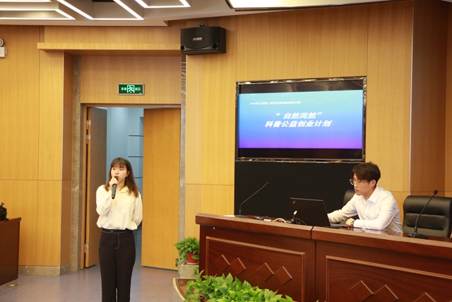 经过初赛,共有12支团队脱颖而出进入决赛。决赛现场以PPT答辩形式进行,答辩内容包括产品或服务介绍、市场分析及定位、商业模式、营销策划等。选手和评委不时思维碰撞,言语交锋,博得现场阵阵掌声。经过激烈角逐,由生命科学与化学学工学院推荐的《“自然而然”科普公益创业计划》获一等奖,由美术学院、经济与法政学院联合推荐的《杭州万映信息技术有限公司》等3个项目获二等奖,学前教育学院推荐的《大仙传媒》等8个项目获三等奖。
