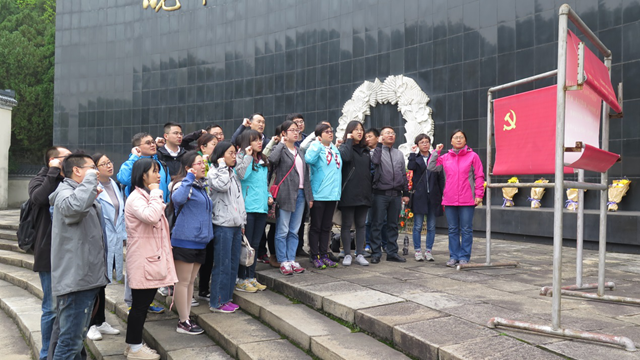 全体人员先后参观了皖南事变烈士陵园、云岭新四军军部旧址以及新四军史料陈列馆。在纪念碑前,同志们面对党旗,庄严宣誓,重温入党誓词。在大量的新四军历史文献、图片以及珍贵的革命文物面前,大家纷纷驻足,认真瞻仰,学习新四军这支“铁军”的诞生及发展史。在先烈们坚强信念和不屈斗志的感染下,同志们的思想受到了净化,精神得到了洗礼。