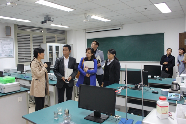 来宾一行还参观了我校教师教学发展中心,该中心负责人刘晓红介绍了实验室的组成架构和我校师范生技能训练整体情况。