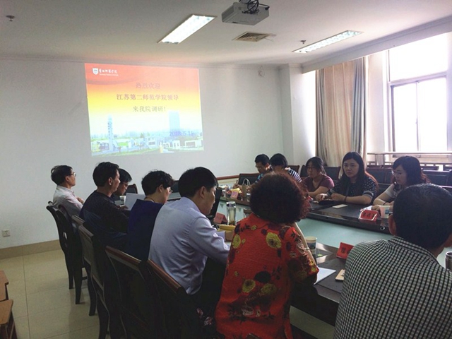 盐城师范学院是全国首家接受中学教育全科认证的试点高校。在此次交流会上,我院一行与盐城师范学院外国语学院的领导和教研室主任就专业建设、培养方案制定、课程体系建设、创新创业课程设置、学科建设等方面进行了对口交流和研讨,并互相介绍了相关工作经验。