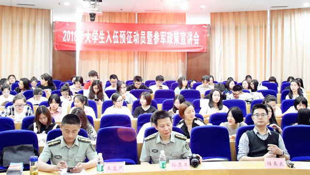 为激发我校大学生参军热情,宣传大学生应征入伍的相关优惠政策及入伍流程,5月23日晚,我校举行2018年度大学生入伍预征动员暨参军政策宣讲会。人武部副部长眭春良出席活动。