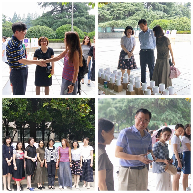 6月4日上午,美术学院和平表情符号创意设计工作坊成果露天售卖展在草场门校区图书馆广场开幕,党委书记王仁雷、校长王健、副校长张勤、副校长祝兴成以及教务处、学工处、团委、保卫处、师训干训中心等机关部门的领导老师们前来观看,纷纷对展览给予高度评价,并对美术学院的未来寄予期待。本次工作坊的导师,德国杜塞尔多夫海塞设计公司联合创始人、艺术总监、上海视觉艺术学院克里斯蒂娜·海瑟(Christine Hesse)教授对活动也予以充分的肯定。