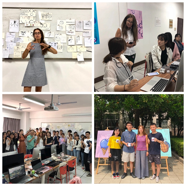 春末夏初时节,2018年度美术学院创意设计工作坊正式上线开课,本次工作坊以和平表情符号为主题,活动吸引了美院25名视觉传达设计专业的同学参与课程讨论与创作练习,同时美术学院闫彦老师和裴凌暄老师担任中方导师。在短短两天的创意课程中,克里斯蒂娜教授用英文和诙谐的肢体语言与同学交流,引导同学们共同探讨方案的创意感;创作阶段,大家将自己的创意贴在黑板上头脑风暴,互相切磋,相互启发,克里斯蒂娜教授以这样独特的教学方式指导同学们找到自己的方向,在愉快而轻松的环境中酝酿出众多有趣且富有创意的点子。经过两天学习,同学们收获颇丰。课程结束后,同学们又在闫彦老师的指导下,利用两天课后时间完善自己的方案,对自己的方案不断进行修改和完善,并将自己的想法加工生产落地成为产品,为6月4日的露天成果售卖展做足准备,完美地完成了本次工作坊的设计课题。