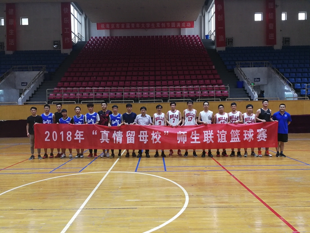为丰富师生们的课余文化生活,营造文明、活泼的校园氛围,增进师生之间的情感交流,6月5日下午,学工处在草场门校区体育馆举办了由各院辅导员组成的教职工队和外国语学院学生篮球队进行的2018年“真情留母校”师生联谊篮球赛。