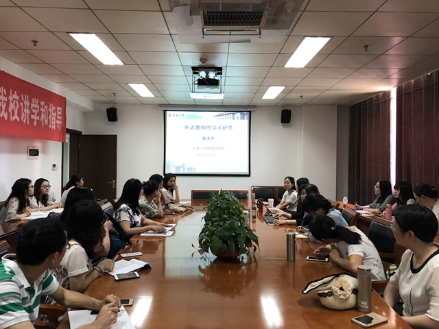 为进一步推动全外教职工教育教学和学术研究同步建设与发展,6月13日下午,外国语学院特邀东南大学外国语学院院长、博士生导师陈美华教授来校作了题为《外语教师的学术研究》的学术讲座,该院党总支书记、副院长张莉主持讲座。