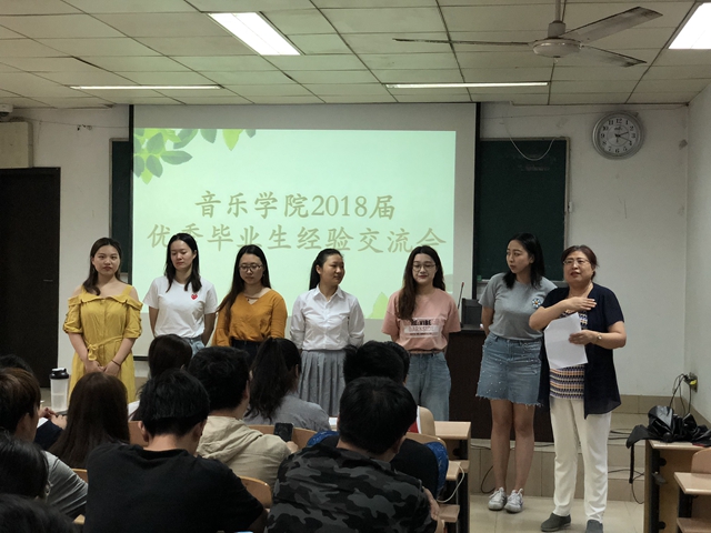 6月13日下午,音乐学院举行2018届优秀毕业生经验交流会,党总支书记蒋向红出席并讲话,六位2018届优秀毕业生进行了经验交流。该院15普本、17普本、17转本同学参加会议。