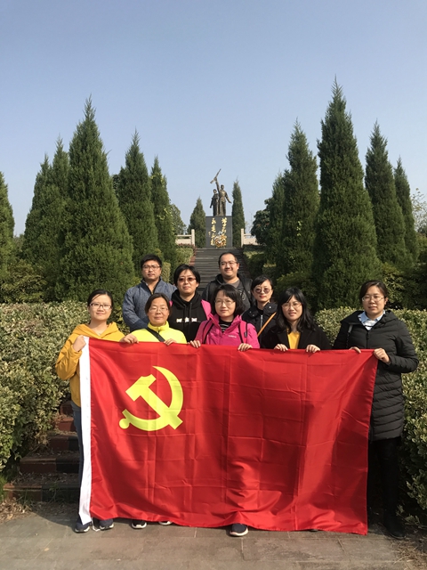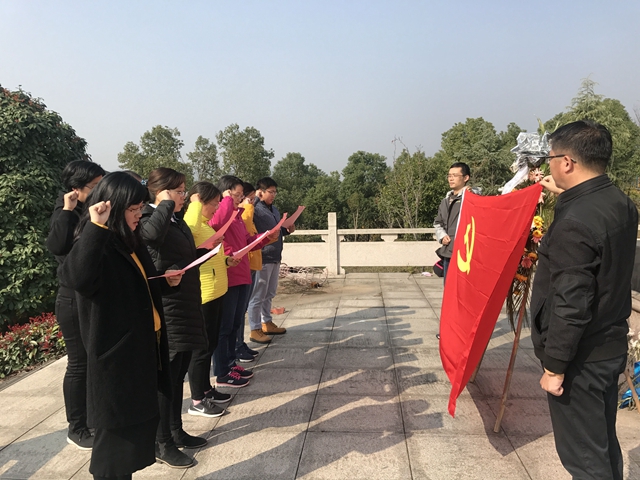 同志们在参观过程中了解了南门村烈士陵园的整个修建过程:南门村党总支书记带领全体村民历时10年建成了这个全国首个村级烈士陵园。党员同志们被长眠于此的49位英雄的故事震撼,同时也感动于当地基层党组织及村民们“执著成就事业,信念激发力量”的精神。在庄严的新四军雕塑前,怀着对革命烈士的怀念崇敬之情,在葛传楠的带领下,该院全体教师党员面对党旗,郑重地重温入党誓词。