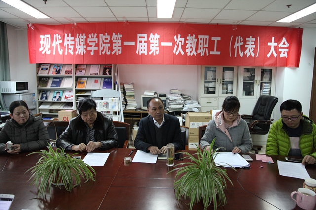 12月26日下午,现代传媒学院在教育技术楼1504会议室召开第一届第一次全体教职工大会。全体教职工本着对学院事业发展高度负责的态度,对大会的主要工作报告和文件进行认真的讨论和审议,圆满完成了大会的各项议程。