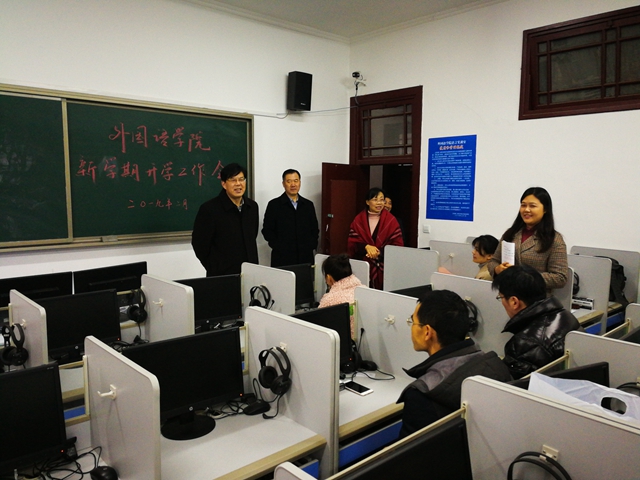 外国语学院召开新学期工作会议。该院党总支书记、院长张莉,党总支副书记黄晓波及全体教职员工参加会议。会议由张莉主持。校党委书记王仁雷携教务处处长徐新萍一行来院进行工作指导。