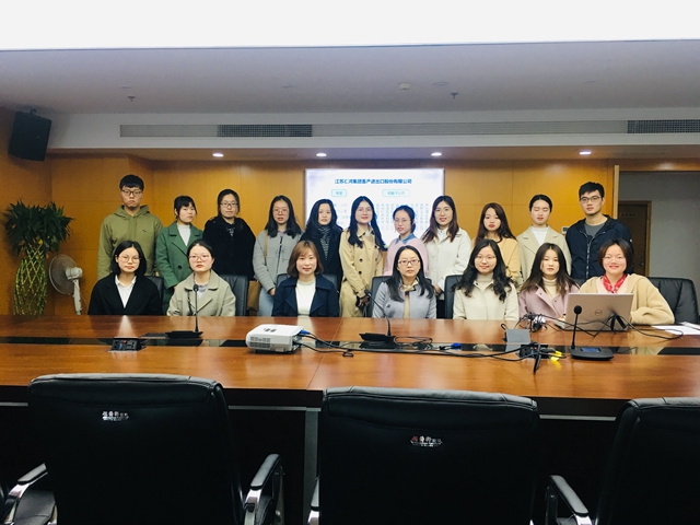 3月25日上午,外国语学院学工处主任王倩和商务英语教师廖文萌带领15级英语非师范专业15名优秀学生,赴江苏汇鸿国际集团畜产进出口股份有限公司开展实习工作。该公司根据学生所长分配了相应的实习岗位。目前,这15名实习学生均已到岗。