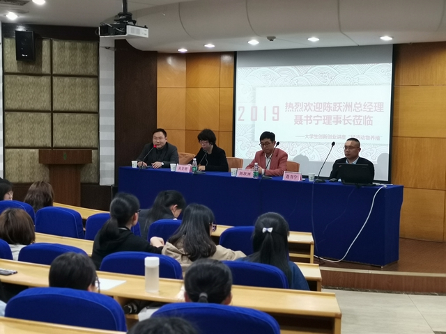 生化学院党政领导高度重视大学生创新创业工作,3月27日下午,该院在草场门校区现代教育技术楼一楼报告厅举办大学生创新创业讲座——“经济动物养殖创业之路”。讲座由副院长朱学伸主持,永安市建州禽业有限公司陈跃洲总经理和福建省蜂学协会聂书宁理事主讲。