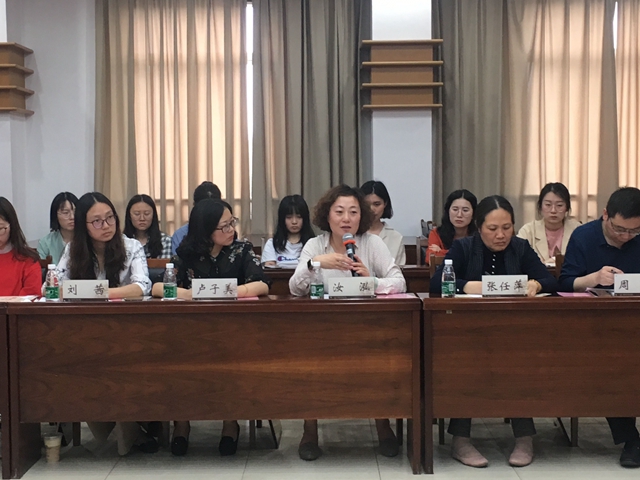 英语(师范)专业专业课教研室主任梁婧玉就本专业人才培养方案的修订完善情况进行了汇报。学工办主任王倩汇报了学院常态化和体系化开展的师范生技能训练活动。学生代表陆曦、王明蔚分别汇报了在小学和初中实践的不同心得和体会。