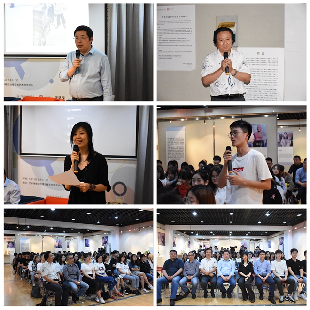 丛志远与大家分享了自己的人生经历,讲述了自己创作的灵感来源,介绍了自己秉承的创作理念以及自己的成名作品。他展示并讲解了他的几幅极具代表性的作品,《极乐世界》《喜迎丰收》《篮球的激情》《千手观音》等,并重点介绍了他为中国一带一路作品展所创作的《纸币西传》。围绕讲座内容、丛志远先生的求学过程,在场的同学们积极提问,丛志远先生与同学们进行了面对面的互动交流探讨。